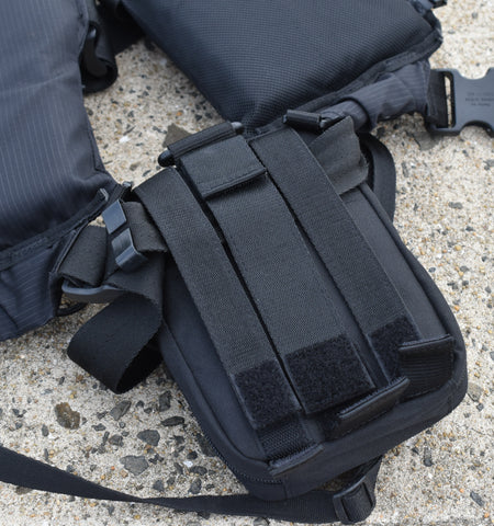 カラビナでぶら下げたり、背面ベルトを使ってベストへの装着したりなど、軽快にランガンスタイルを楽しめます。