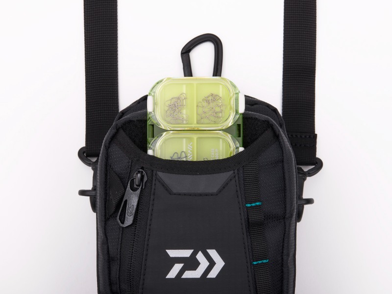 「エギポーチプロ」と同じく、ショルダーバッグ仕様とポーチ仕様、ゲームベスト装着仕様の3wayタイプで使用可能(ショルダーベルトは別売り)です。