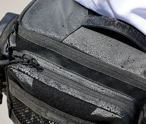 内部への浸水を抑えるコーティング生地と、引き裂きに強いダブルリップストップを採用しています。