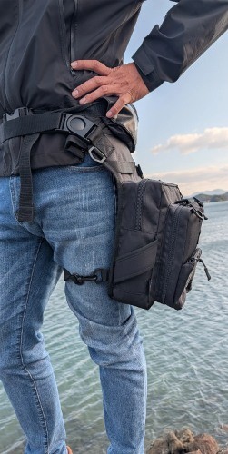レッグバッグは、太ももに固定して使用するスタイルのエギングバッグです。