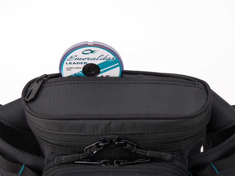 エギマット付きフロントポケットですばやくエギを交換できるほか、天面スリットで小物を整理しやすくなっているのもおすすめポイントです。
