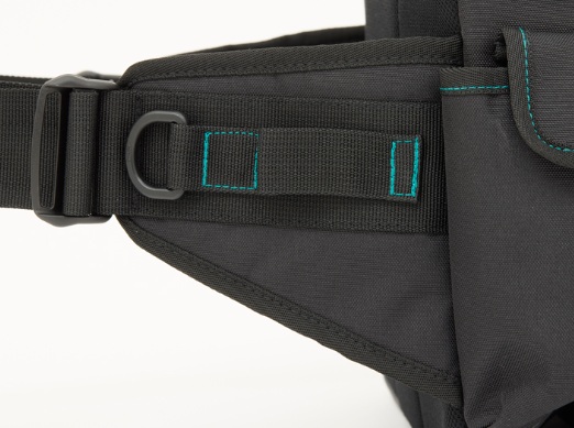 身体に沿うベルト角度&スタビライザーベルトでブレにくく、大型ファスナー引手で片手操作も快適。