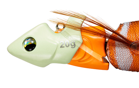 ヘッド下部のアシストアイにナス型オモリを追加でき、激流・ディープレンジ攻略をサポートします。